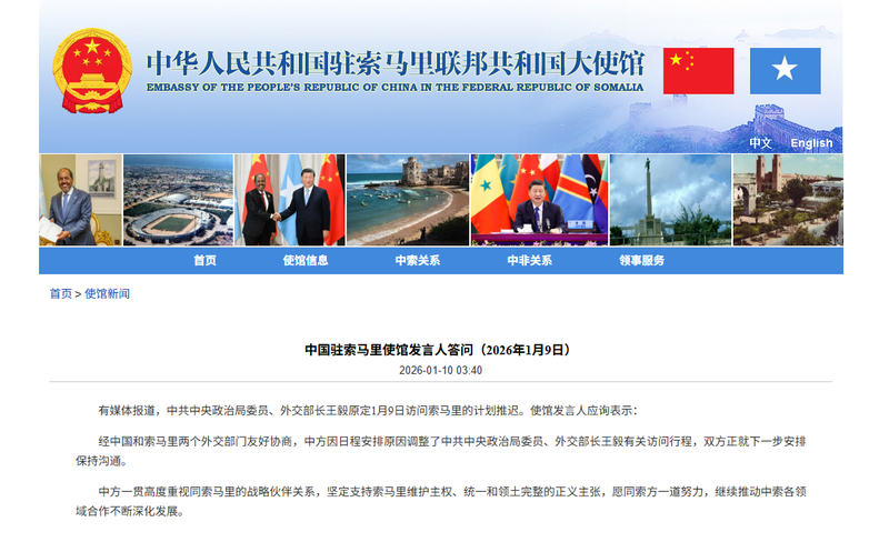 王毅首次访问索马里将推迟。中国大使馆回应 – 新京报